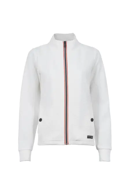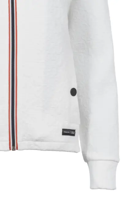 Gemusterte Sweatjacke mit langem Arm. Vorne befinden sich zwei praktische Taschen mit Druckknopf.