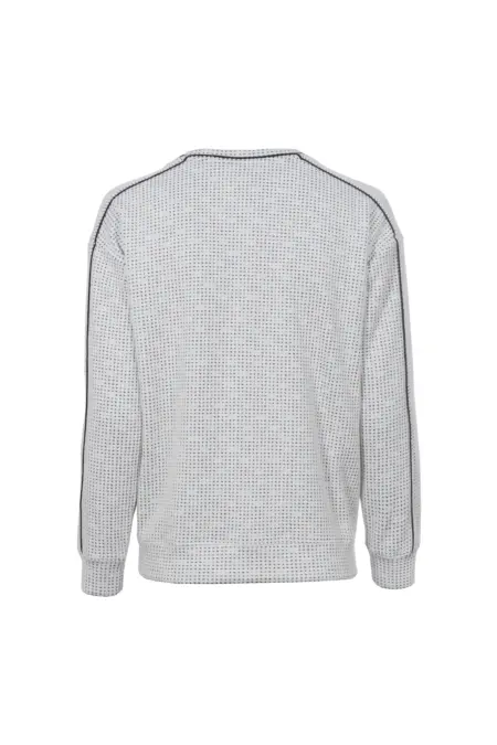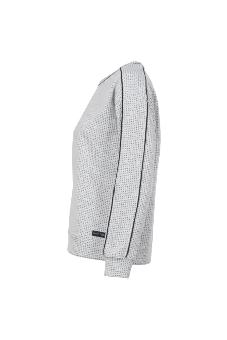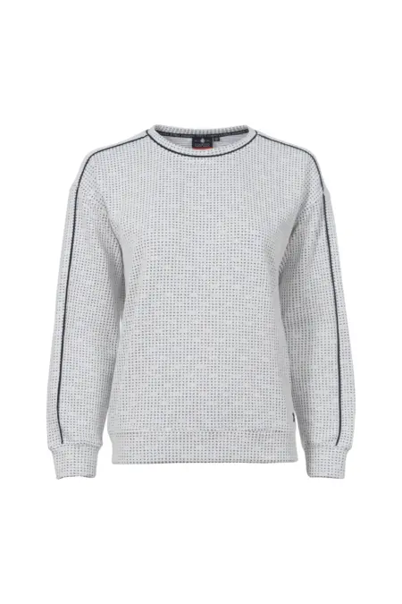 Jacquard-Shirt in modernem Boxy-Schnitt mit Rundhalsausschnitt. Das Material mit kleinen Farbakzenten erzeugt eine einzigartige Optik. Die Pipings in Navy unterstützen den coolen, legeren Look.