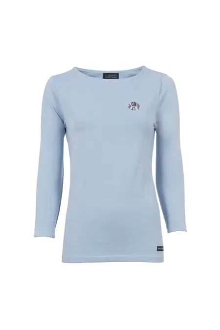 Shirt mit 3/4-Arm und U-Boot Ausschnitt. Außerdem mit einer kleinen Stickerei in bunten Farben, die sofort gute Laune machen.