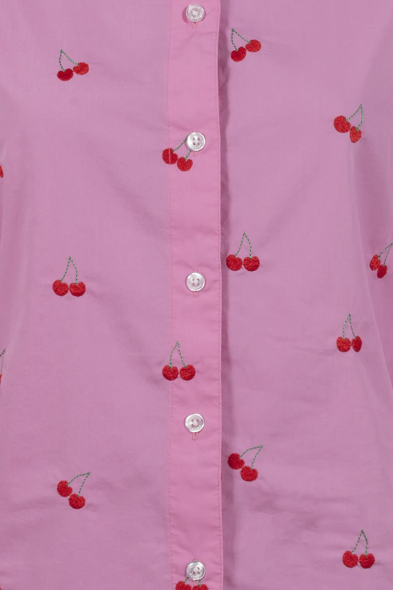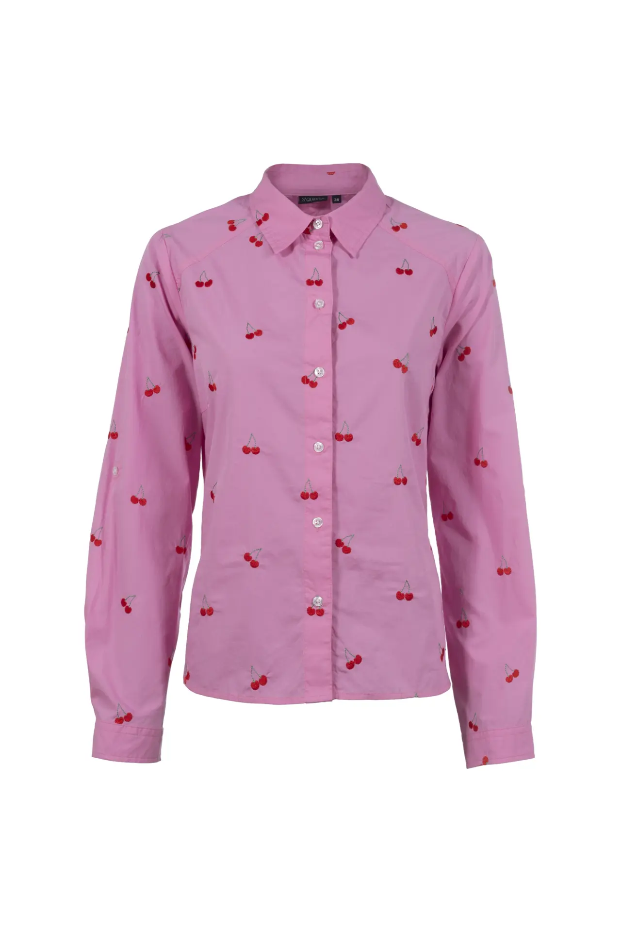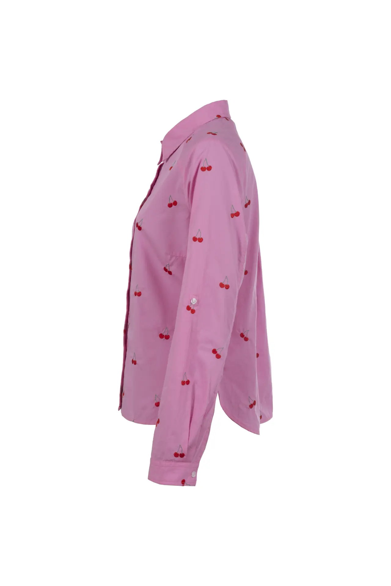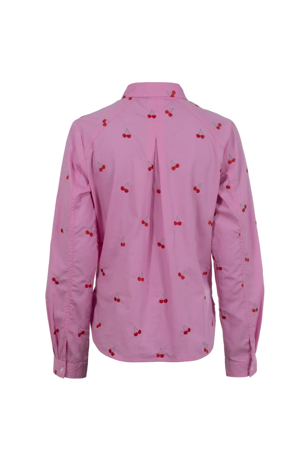 Diese Bluse bringt Farbe in jeden Look. Die modischen Kirsch-Stickereien setzten verspielte Highlights, während der klassische Schnitt für eine schmeichelhafte Passform sorgt. Die Ärmel lassen sich hochkrempeln und mit einem Riegel fixieren.