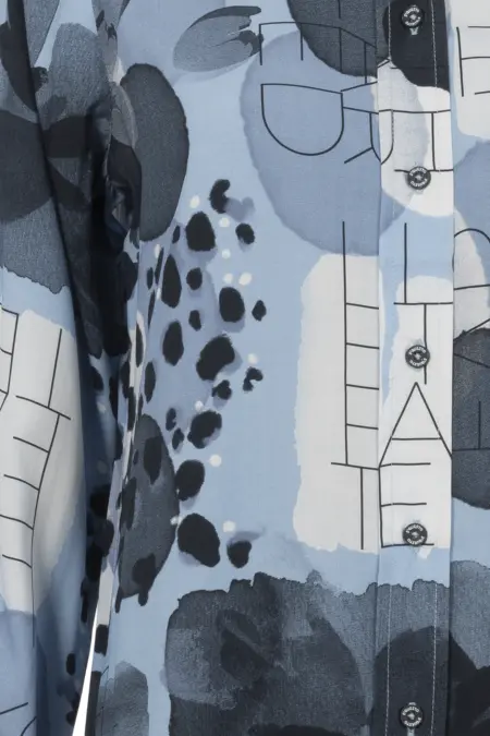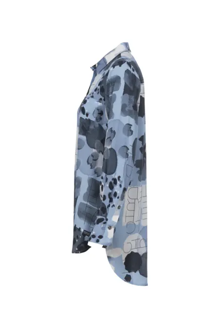 Lockere Bluse in klassischem Schnitt. Der aufwendige Allover-Print sticht sofort ins Auge. Die Bluse ist in Blau- und Weißtönen gehalten und vielseitig kombinierbar.