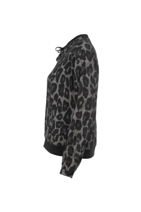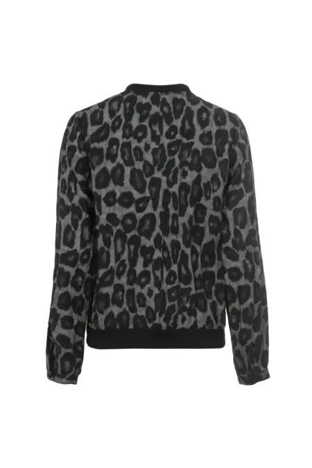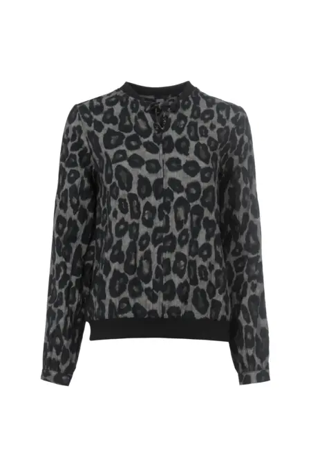Tolle Langarmbluse mit kleinem V-Ausschnitt in angesagtem Leo-Print. Passend dazu sind die Abschlüsse aus Rippstoff an Saum und Kragen.