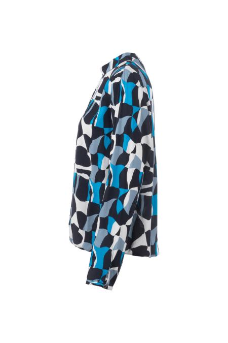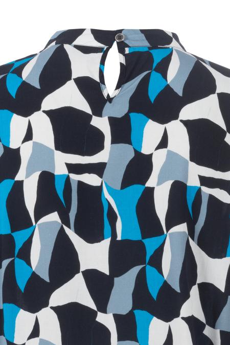 Die leichte Bluse mit Stehkragen sticht besonders durch ihre spannende Schnittführung hervor, sowie auch durch das kontrastreiche Allover-Muster. Mit Gummizug am Bund für einen optimalen Sitz.