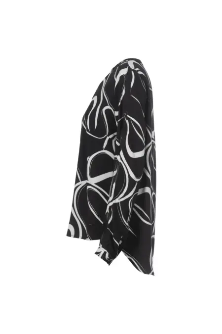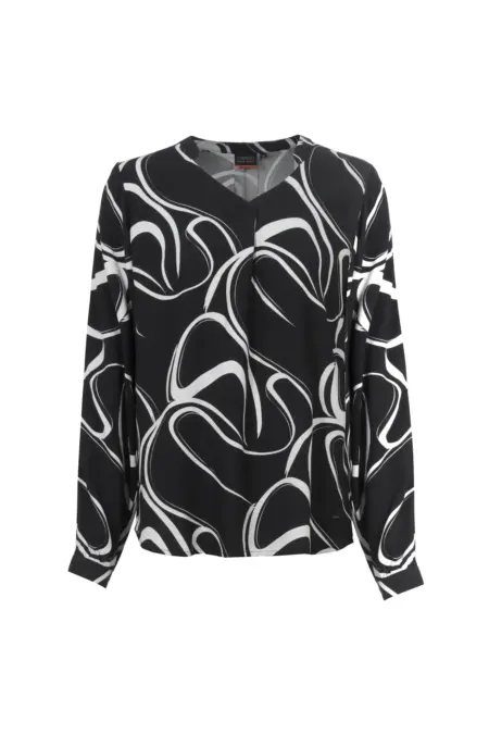 Legere Bluse mit V-Ausschnitt und Allover-Print mit geschwungenen Linien.