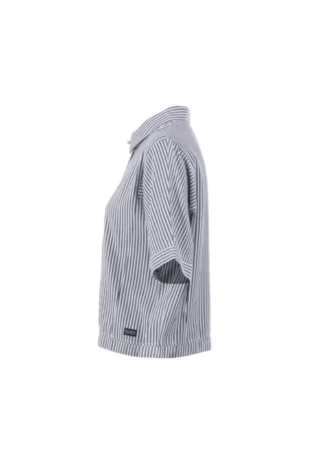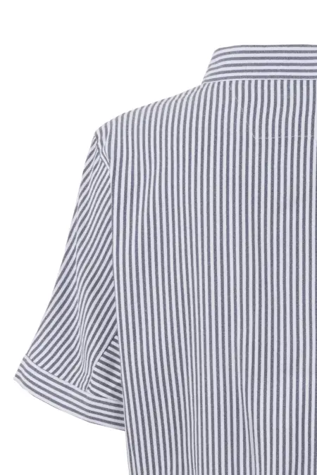 Modische Bluse mit zarten Streifen. Die Bluse ist boxy geschnitten und durchgeknöpft. Vielfältige Kombinationsmöglichkeiten machen sie zu einem perfekten Begleiter für den Frühling und Sommer.