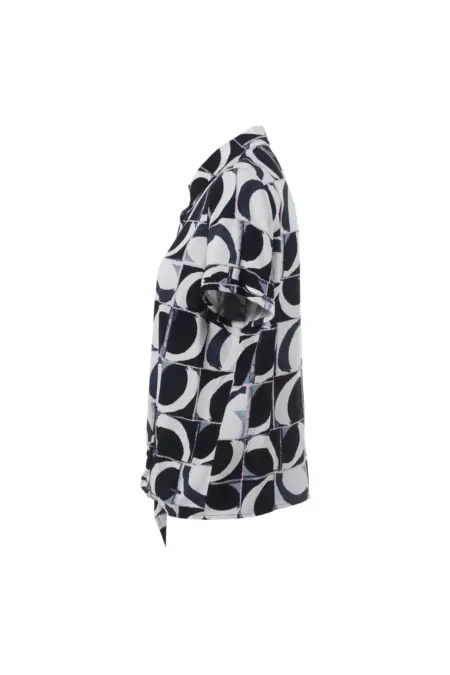 Durchgeknöpfte Halbarm-Bluse mit verspieltem Knotendetail für einen modernen Look. Der grafische Allover-Print mit Farbakzenten in Rosa peppt jeden Look auf. Für ein besonders einzigartiges Outfit kann die Bluse mit der passenden S’questo Webhose kombiniert werden.