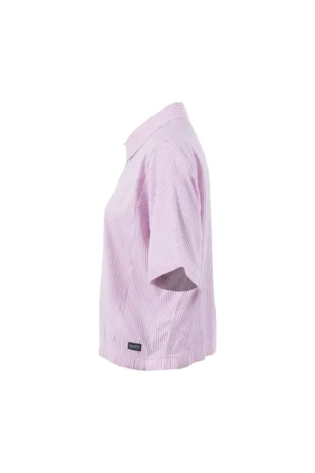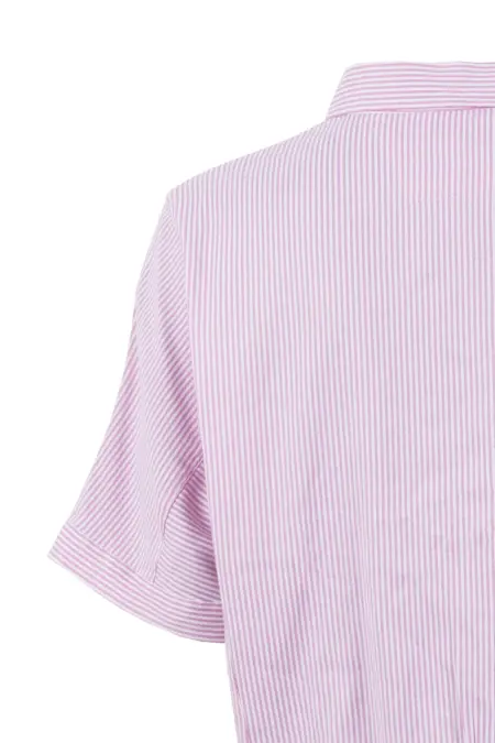 Modische Bluse mit zarten Streifen. Die Bluse ist boxy geschnitten und durchgeknöpft. Vielfältige Kombinationsmöglichkeiten machen sie zu einem perfekten Begleiter für den Frühling und Sommer.