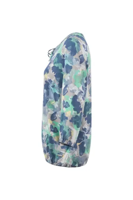 Leichte Bluse mit V-Ausschnitt und zierenden Bändern. Floraler Print in Aquarell-Optik und frischer Farbgestaltung. Gummibänder in Ärmeln und Saum sorgen für eine perfekte Passform.
