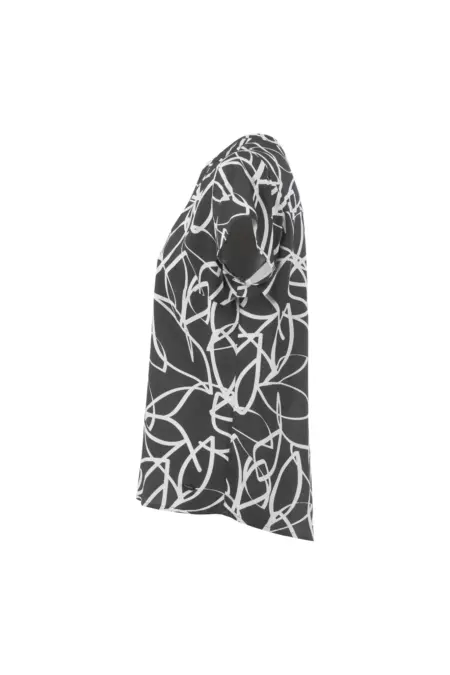 1/2-Arm-Bluse mit V-Ausschnitt. Das grafische Allover-Muster macht sie zu einem einzigartigen Hingucker.