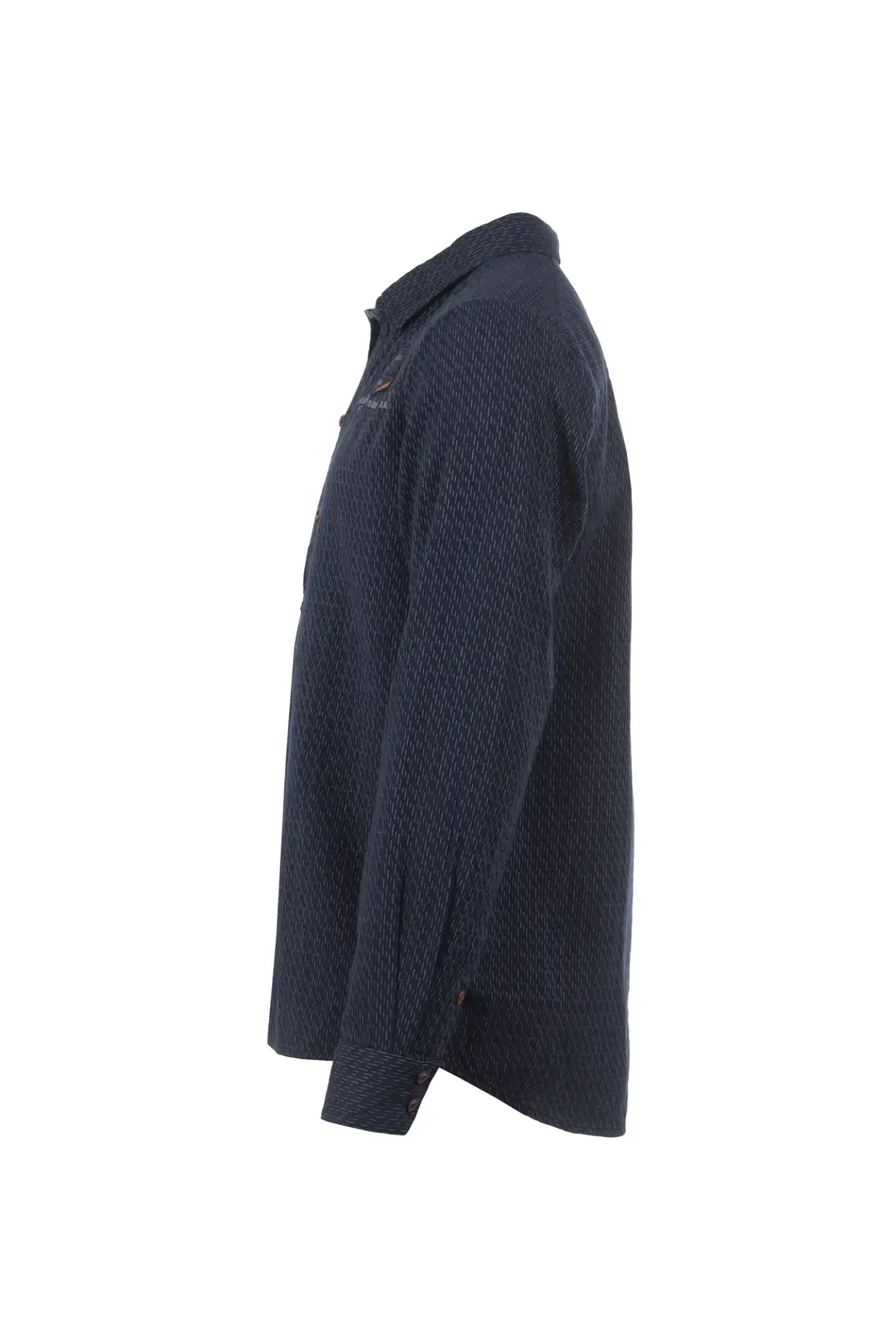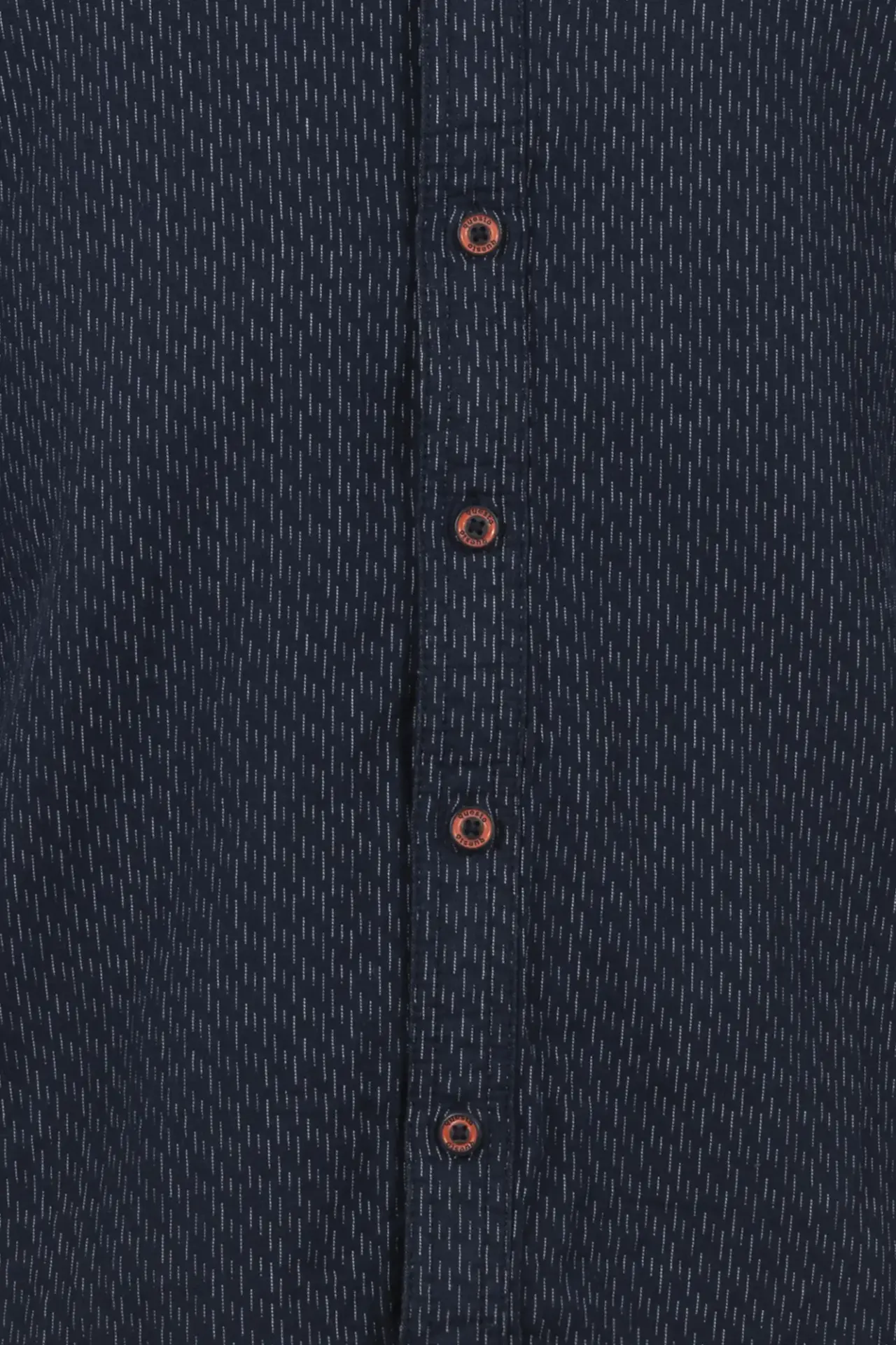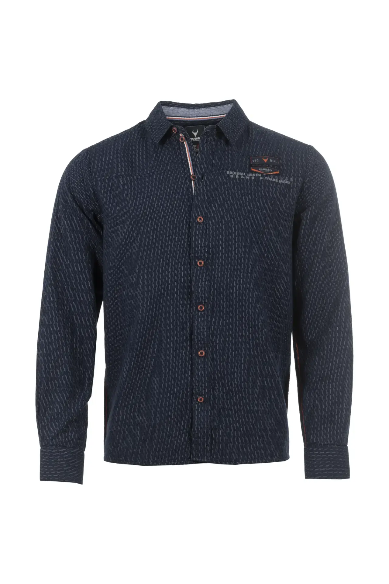 Modernes, durchgeknöpftes Hemd mit einem Minimal Allover-Print. Nahtpipings, Knöpfe und hochwertige Questo-Patches in kontrastigem Orange sind ein echter Blickfang.