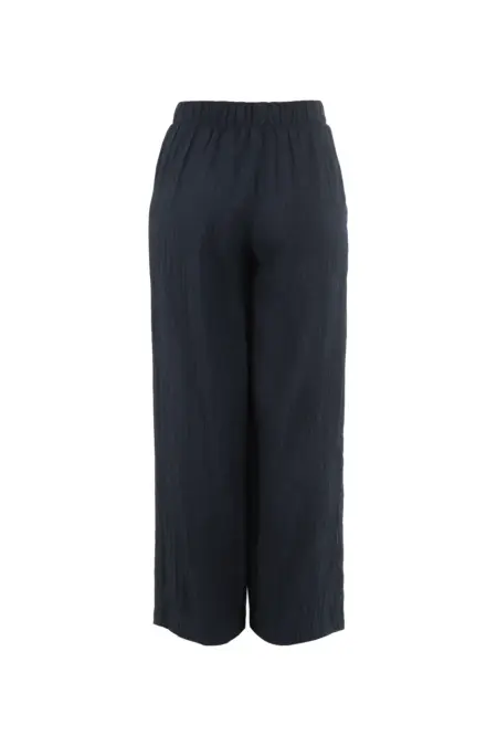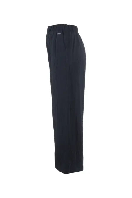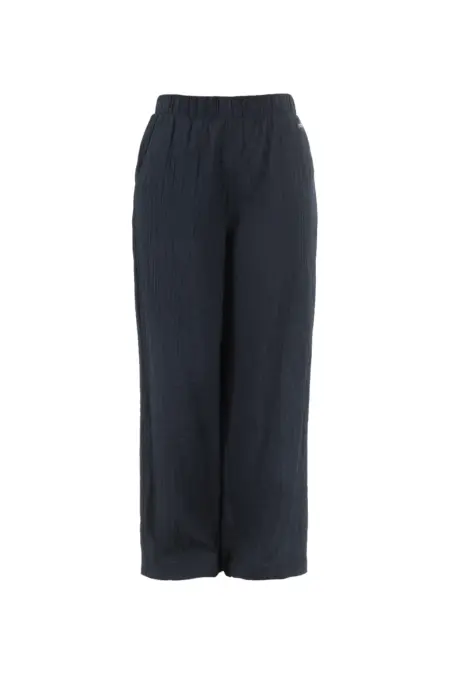 Lockere Hose aus strukturierter Webware in Navy. Der Gummibund sorgt für hohen Komfort und den perfekten Sitz. Die Hose kann besonders gut kombiniert werden mit der passenden s’questo Bluse.