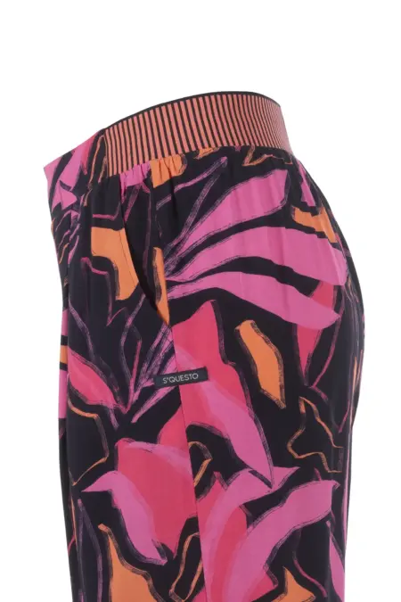 Die lockere Webhose in 7/8-Länge ist mit ihrem floralen Allover-Muster ein echter Hingucker. Abgerundet wird der Look durch den gestreiften Gummibund und Taschen. Besonders gut kombinierbar mit der passenden S’questo Bluse.