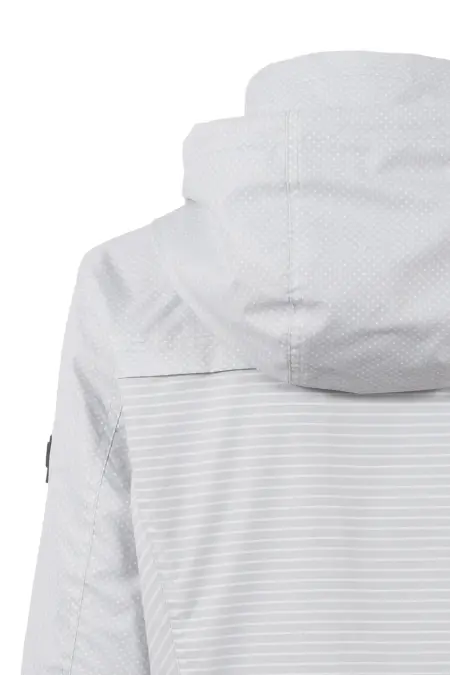 Kurze Jacke mit Kapuze in verpspielt-maritimer Optik mit zarten Streifen und Pünktchen an den Ärmeln.