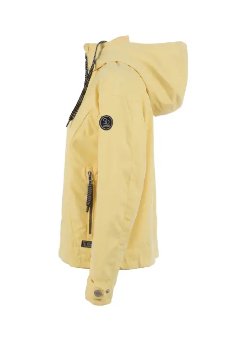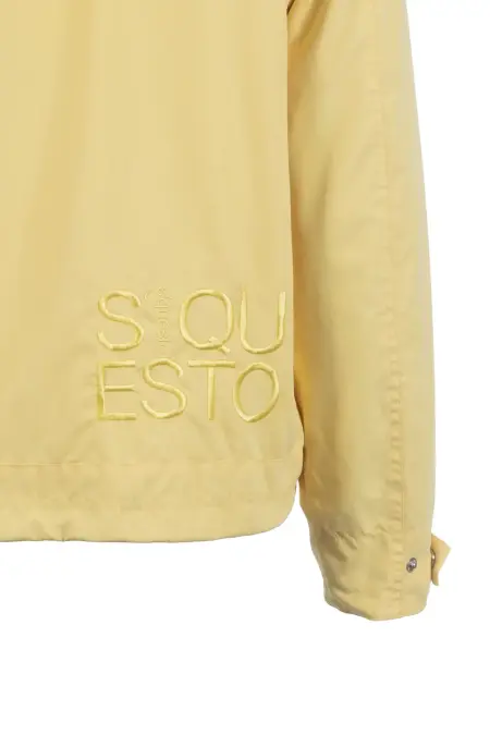 Leichte Jacke mit Kapuze und matter Oberfläche. Das Kordeldetail der Kapuze findet sich auch an den Reißverschlüssen wieder, sodass ein harmonisches Bild entsteht. Ein besonderes Detail ist auch die hochwertige Stickerei am Rücken.