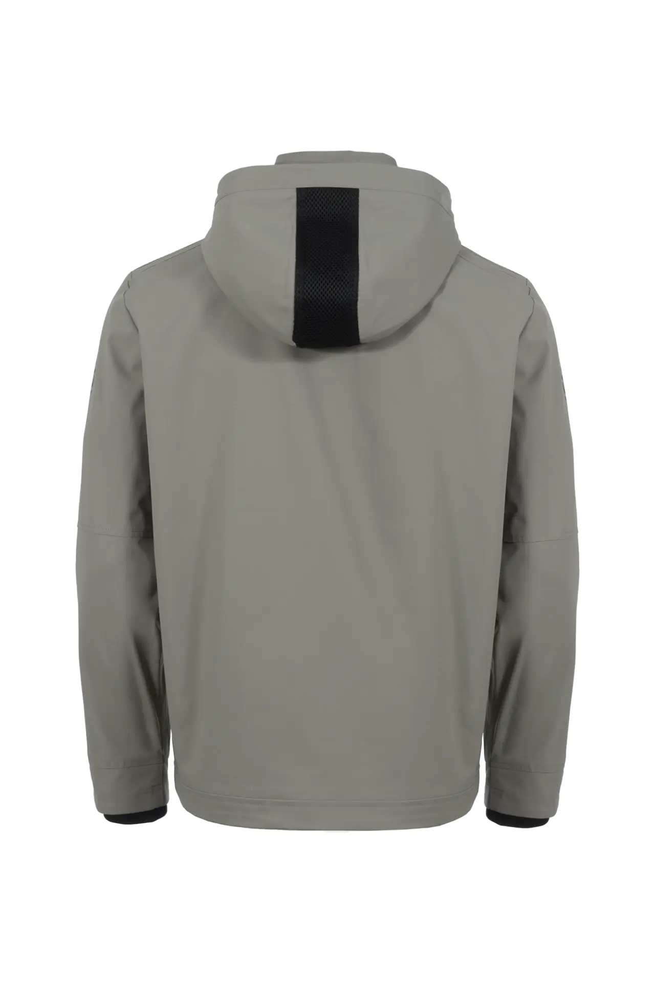 Diese leichte Jacke in hellem Oliv setzt mit Akzenten in Orange und Schwarz markante Kontraste. Zwei aufgesetzte Brusttaschen unterstreichen den lässigen Look. Ein Lettering-Print auf dem Ärmel und die Kapuze runden das Design stimmig ab.