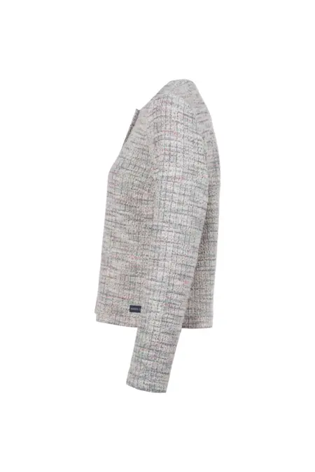 Feminines Bouclé-Jäckchen in frischer Farbkombination. Perfekt kombiniert mit dem passenden S’questo Basecap und dem passenden Shirt für ein stimmiges, unkompliziertes Outfit.