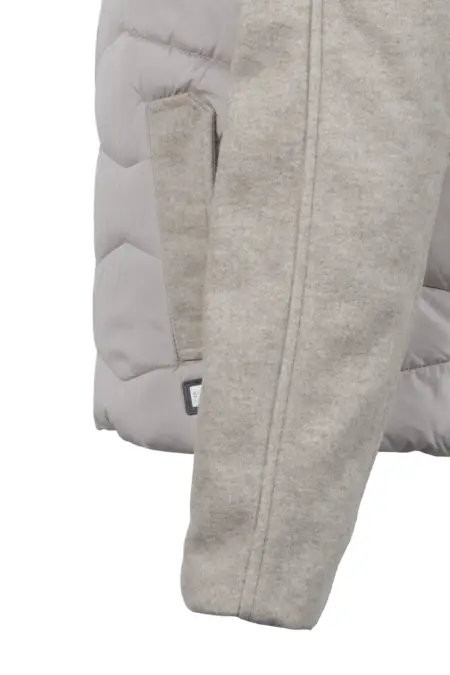 Moderne Mix&Match Jacke mit Stehkragen. Mit Wollmaterial im oberen Bereich und außergewöhnlicher Steppung im unteren Bereich. Für einen modischen und vielseitigen Look.