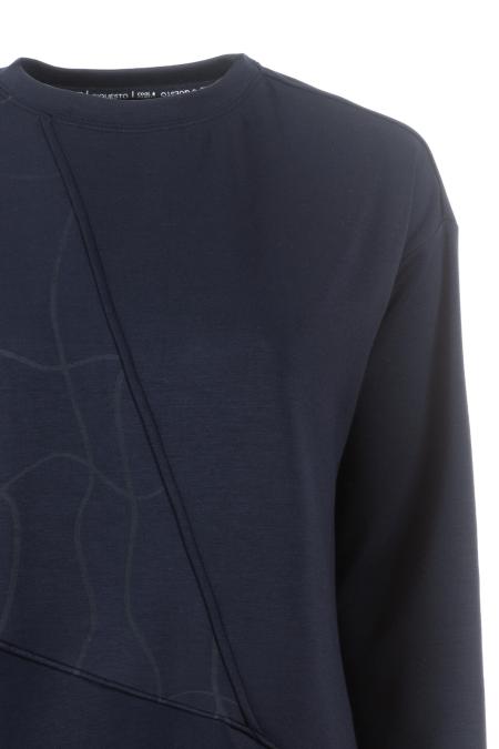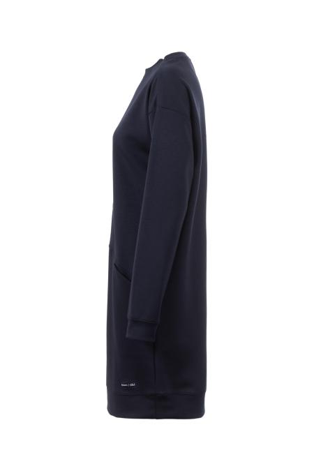Sweatkleid mit angenehmer Passform und Rundhalsausschnitt. Das Kleid hat eine besondere Optik durch diagonal platzierte Ziernähte. Hervorgehoben wird die besondere Gestaltung durch einen tonal gehaltenen, grafischen Print. Ein weiteres Detail ist eine raffiniert platzierte, unauffällige Tasche zum Verstauen von Kleinigkeiten.