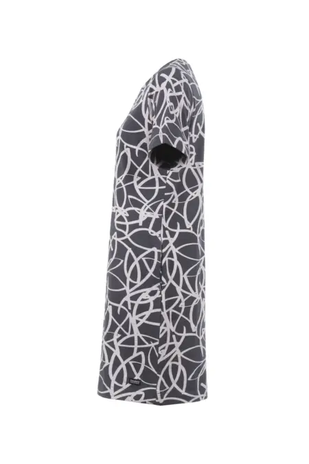 Legeres Jerseykleid in neutralen Farben. Zum Hingucker wird das Kleid durch das grafische Muster. Der Rundhalsausschnitt sowie der Comfort Sleeve sorgen für ein angenehmes Tragegefühl.