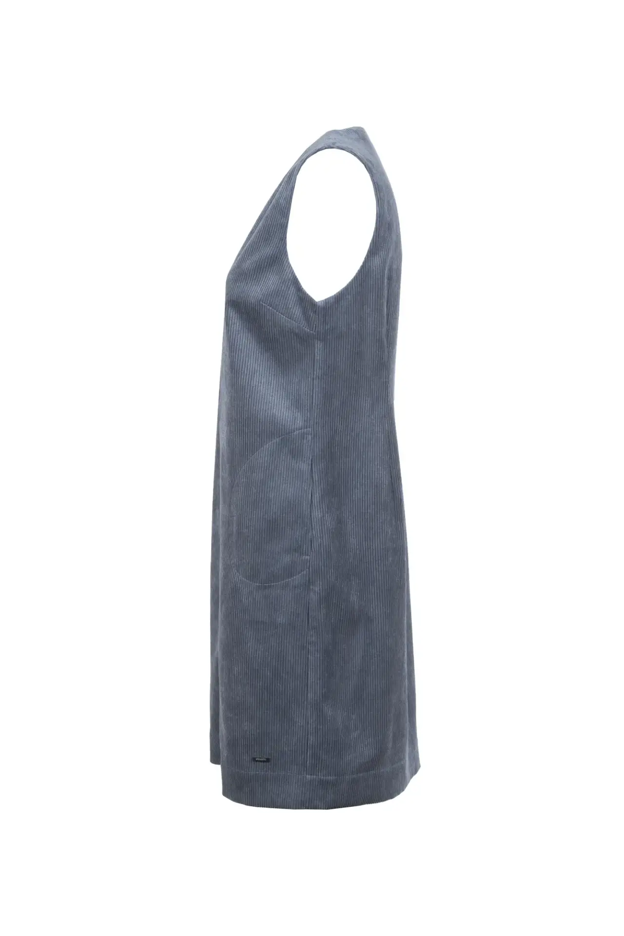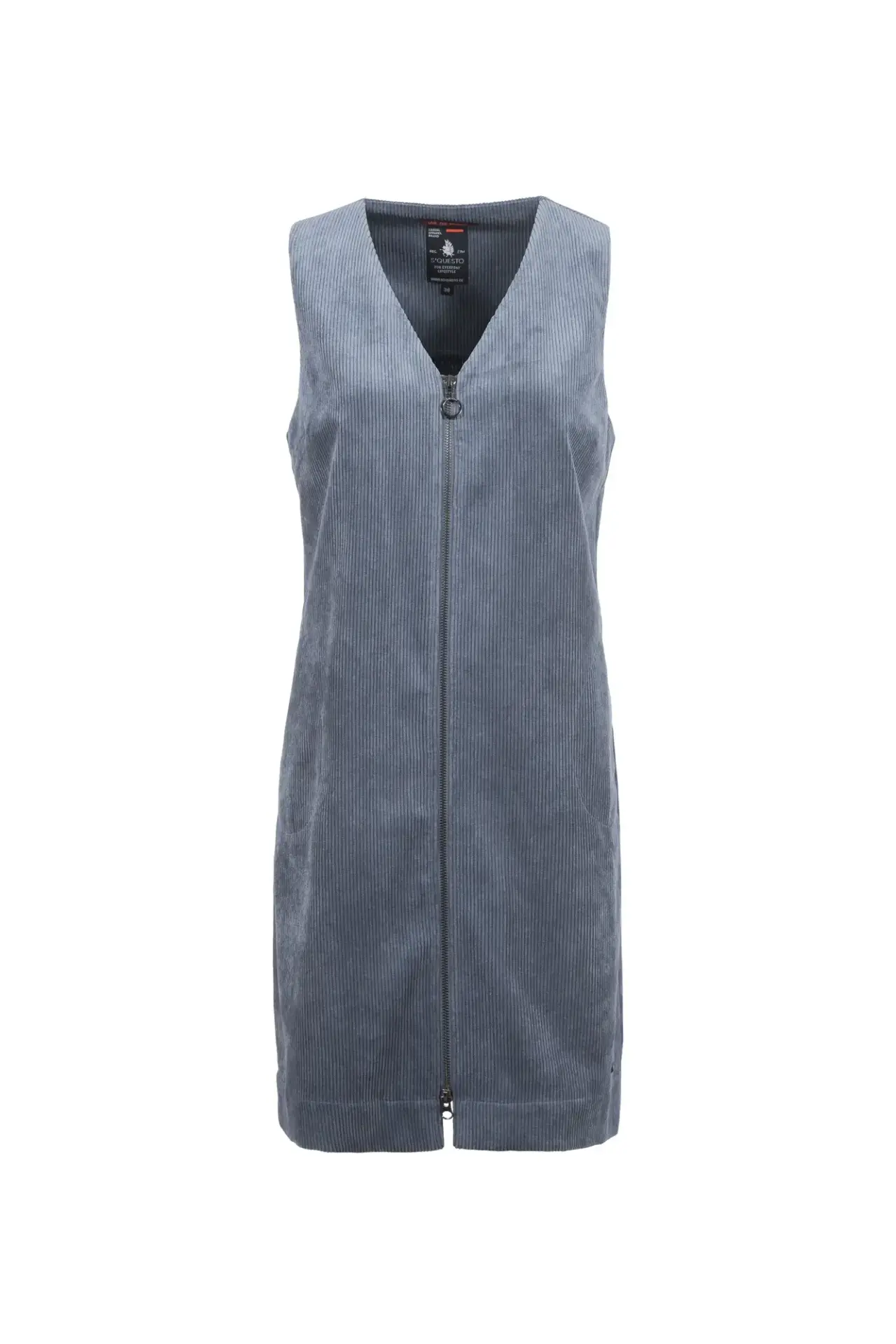 Ärmelloses Cord-Kleid in modischem Jeansblau. Der durchgehende Reißverschluss fügt eine lässige Note hinzu und harmoniert perfekt mit den seitlichen Taschen. Mit Abnähern für eine gleichzeitig lässige und schmeichelhafte Silhouette.