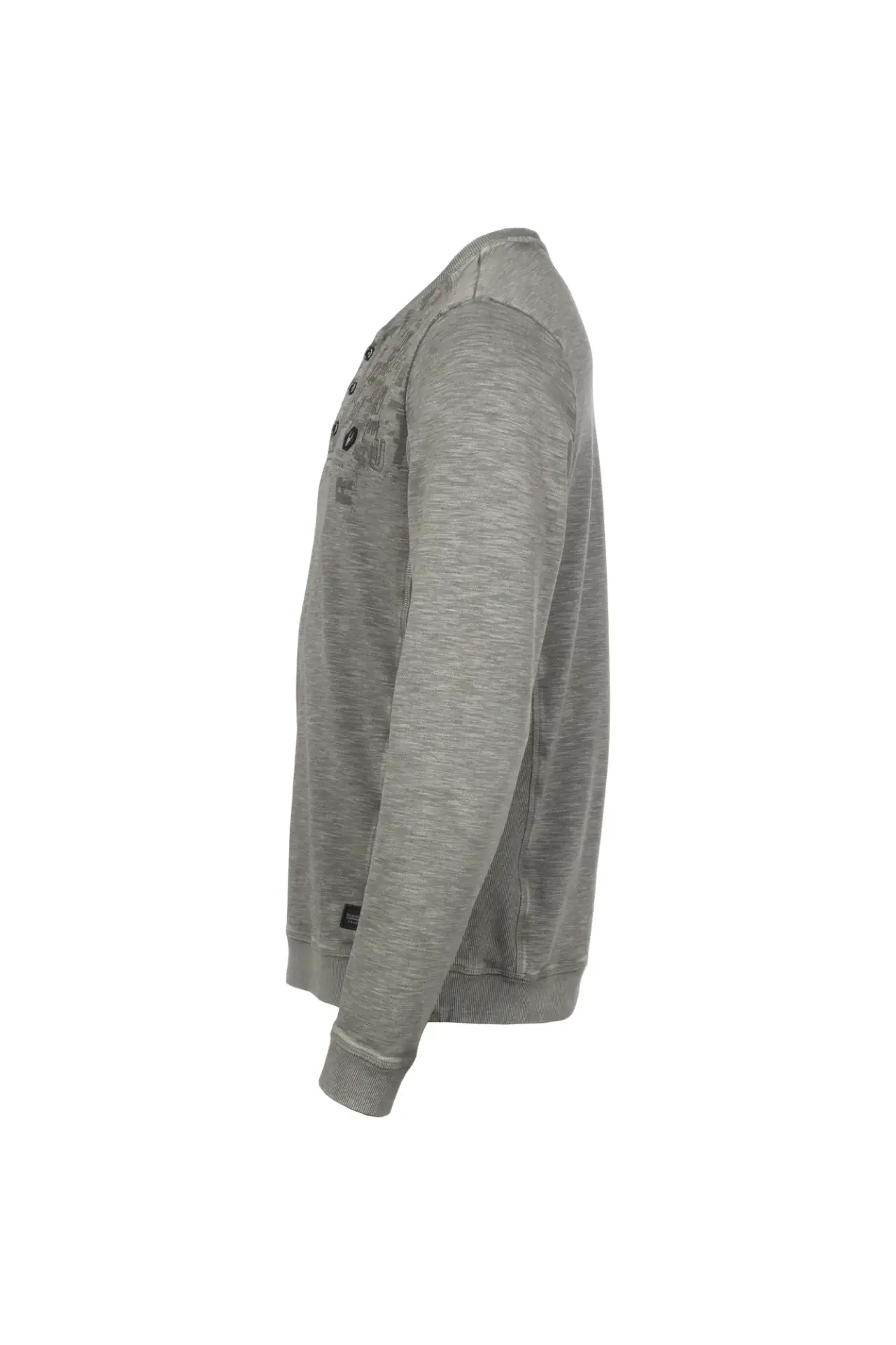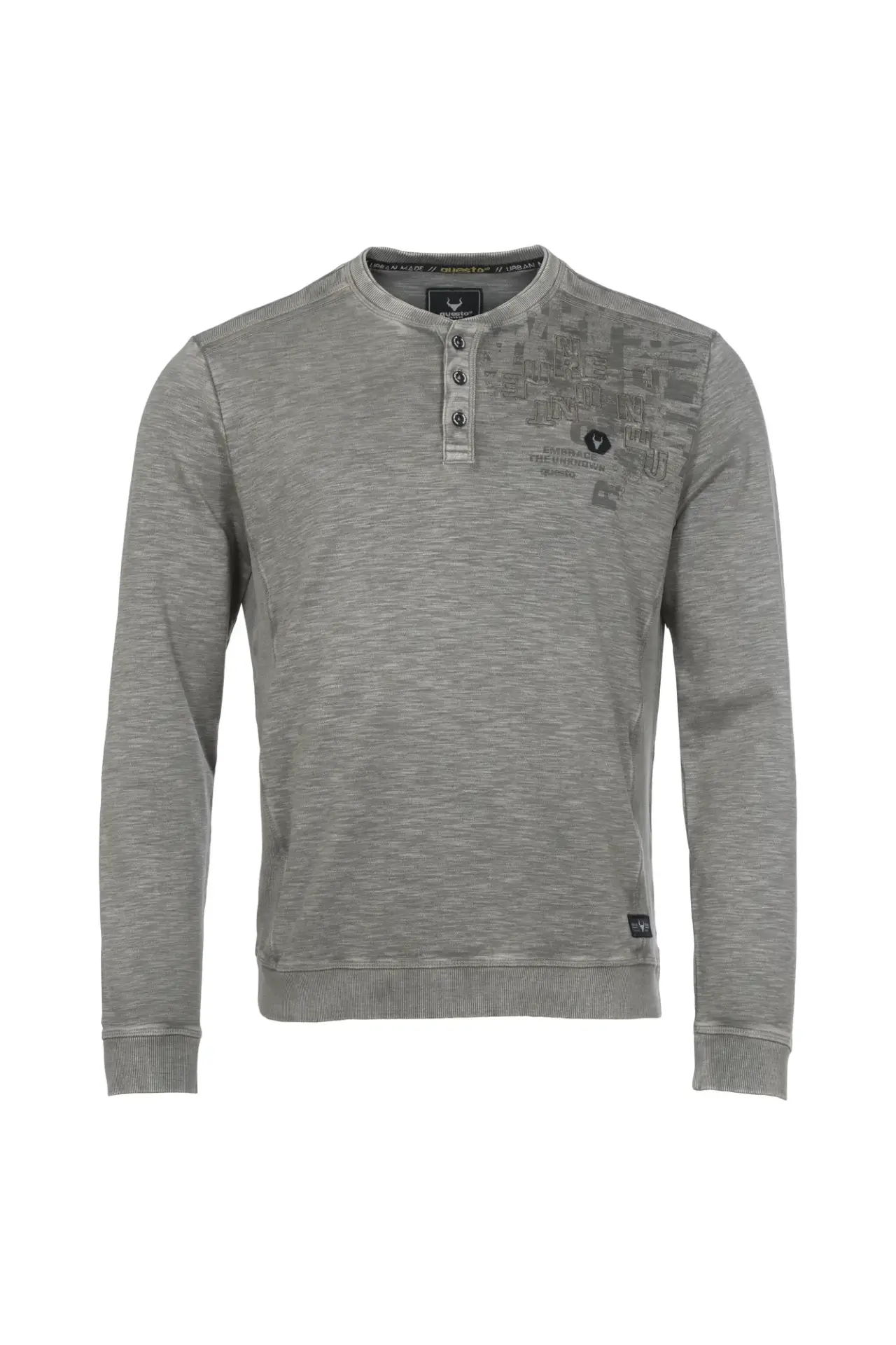 Flammgarn Sweatshirt mit Schulterprint in tonaler Farbgestaltung. Mit Henleykragen und Flammgarnmaterial für eine coole Optik. Mit Rippbündchen für ein angenehmes Tragegefühl.