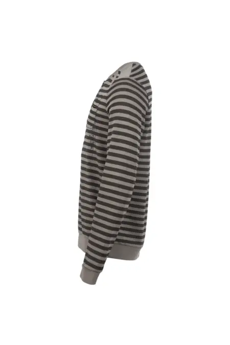 Leichtes Sweatshirt in Streifenoptik mit Henley-Kragen. Eine aufgesetzte Brusttasche und ein dezenter Lettering-Print verleihen dem Look eine lässige Note. Einfarbige Kontrasteinsätze an den Schultern runden das Design ab.