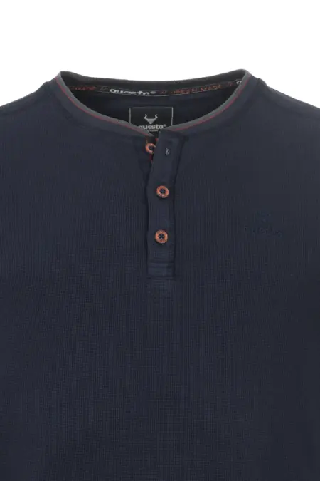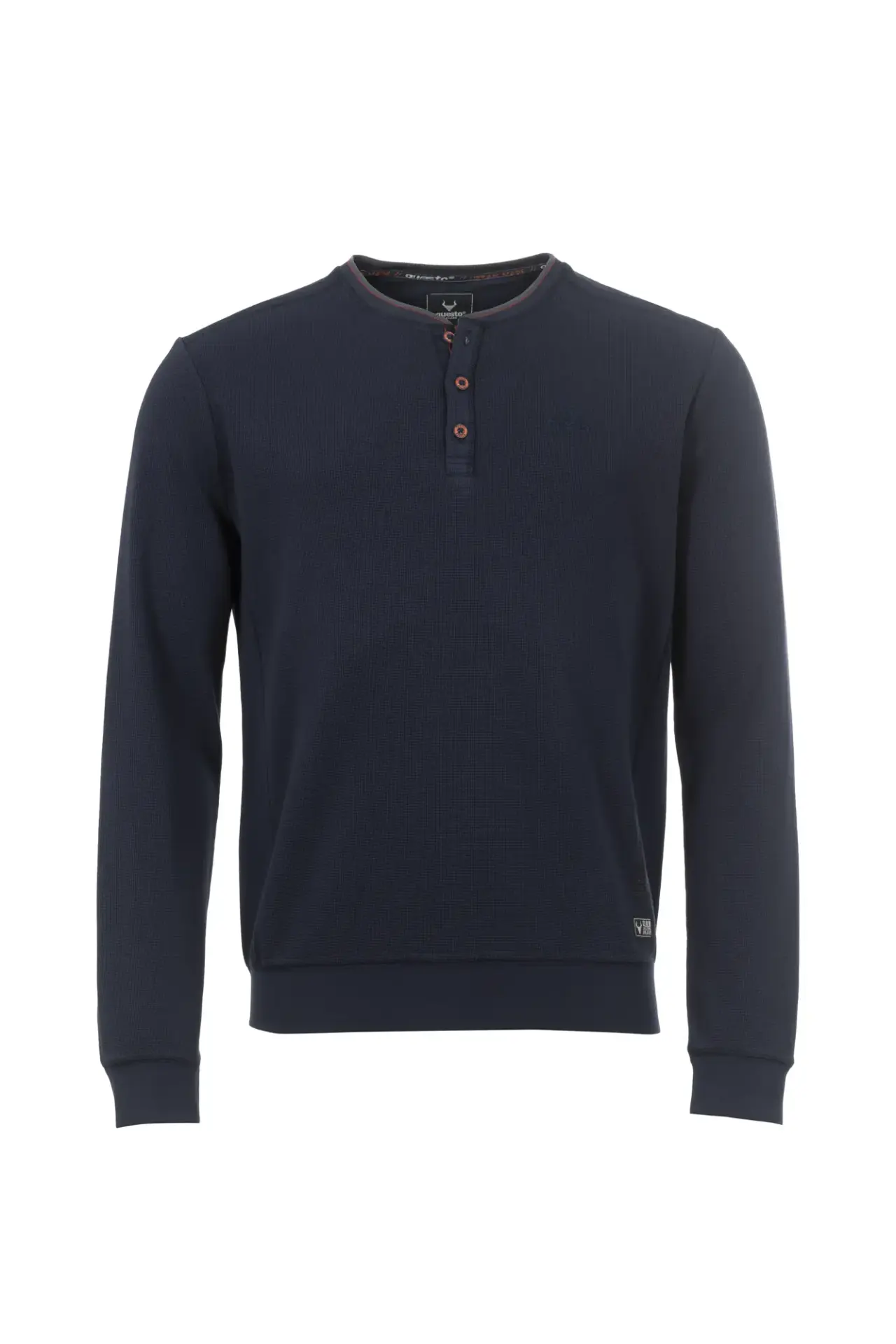Sweatshirt mit Henleykragen und Rippabschlüssen. Die Strukturware und der platzierte, seitliche Questo-Print ergeben einen sportiven Look.