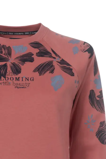 Das Sweatshirt mit Rundhalsausschnitt hat durch den Raglanarm und den breiten Bund einen sportiven casual Charakter. Ein großflächiger Blumenprint fügt einen femininen Touch hinzu. Abgerundet wird der Print durch ein zartes Lettering auf der Brust.