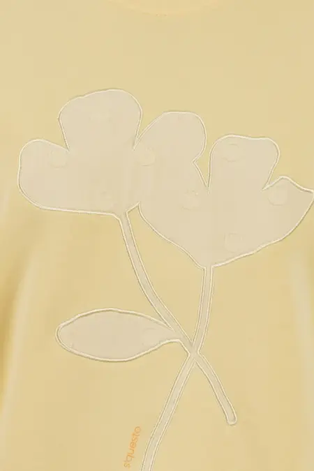 Feminines Sweatshirt mit spannendem Blumenmotiv auf der Front. Das Sweatshirt hat einen Rundhalsausschnitt und kleine Schlitze an den Seiten.
