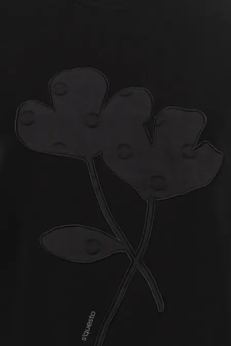 Feminines Sweatshirt mit spannendem Blumenmotiv auf der Front. Das Sweatshirt hat einen Rundhalsausschnitt und kleine Schlitze an den Seiten.