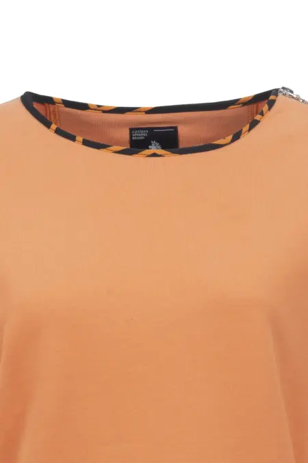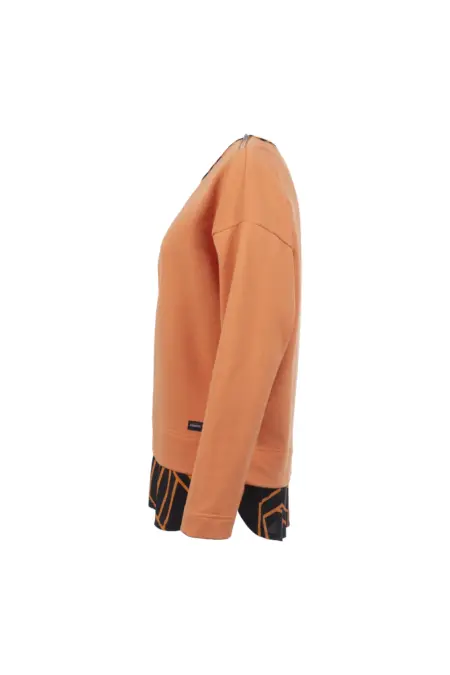 Raffiniertes Sweatshirt mit Webparts am Bund und am Kragen in kontrastreichem, grafischem Muster. Der dekorative Reißverschluss am Kragen verleiht dem Sweaty einen modernen Touch. Die überschnittene Schulter rundet den Look mit einer entspannten, lässigen Note ab.