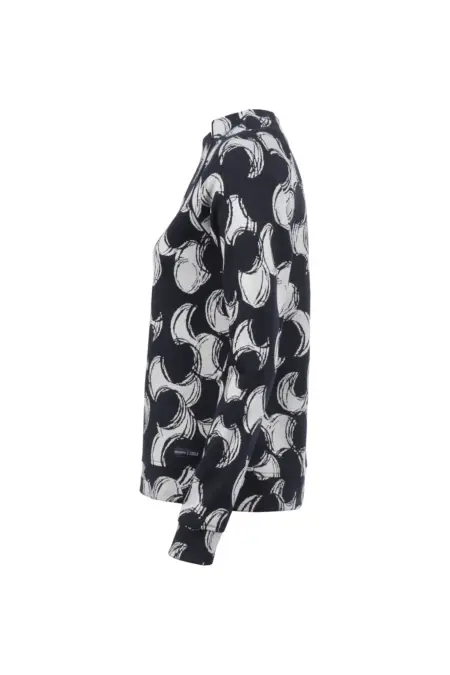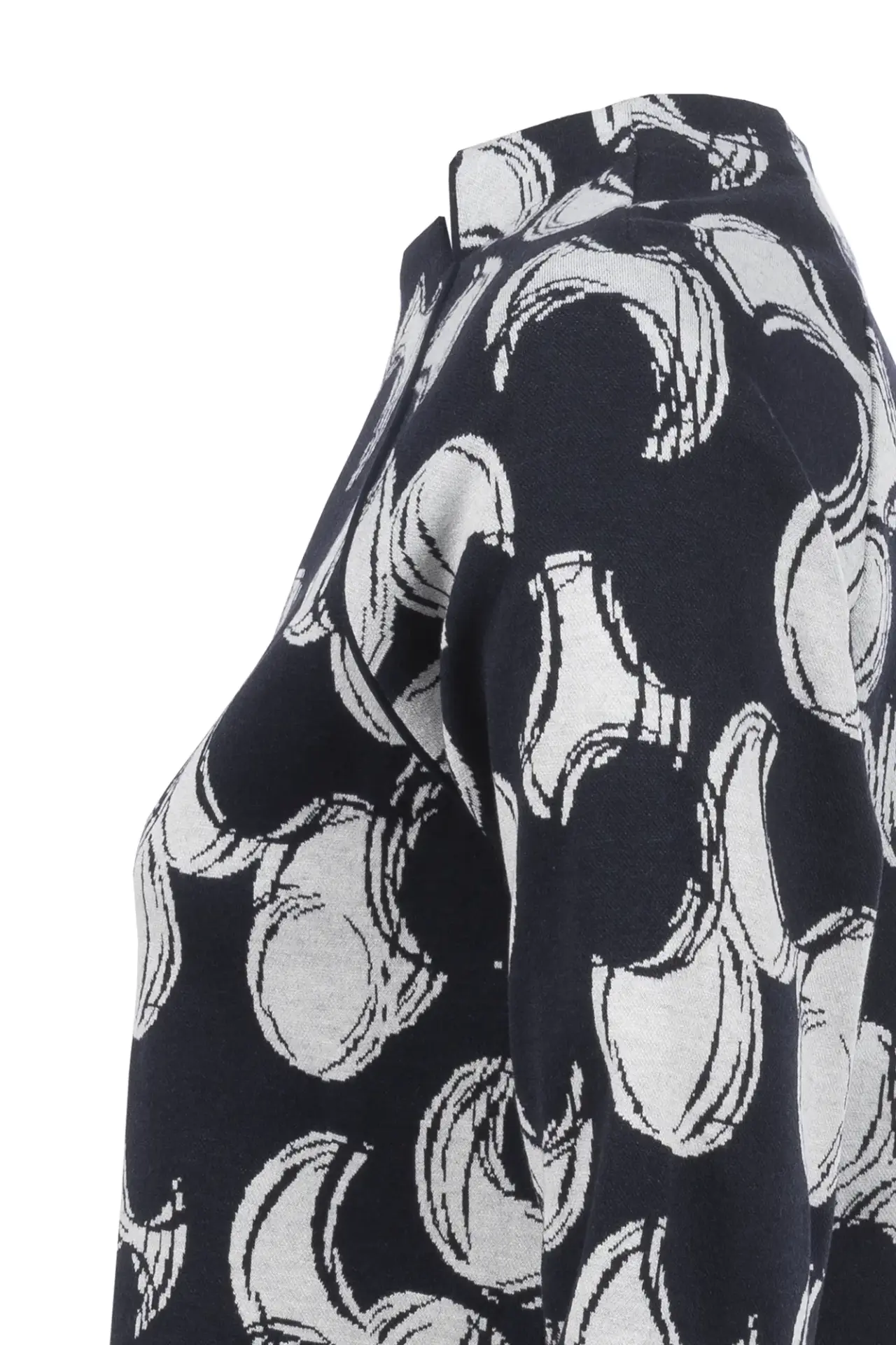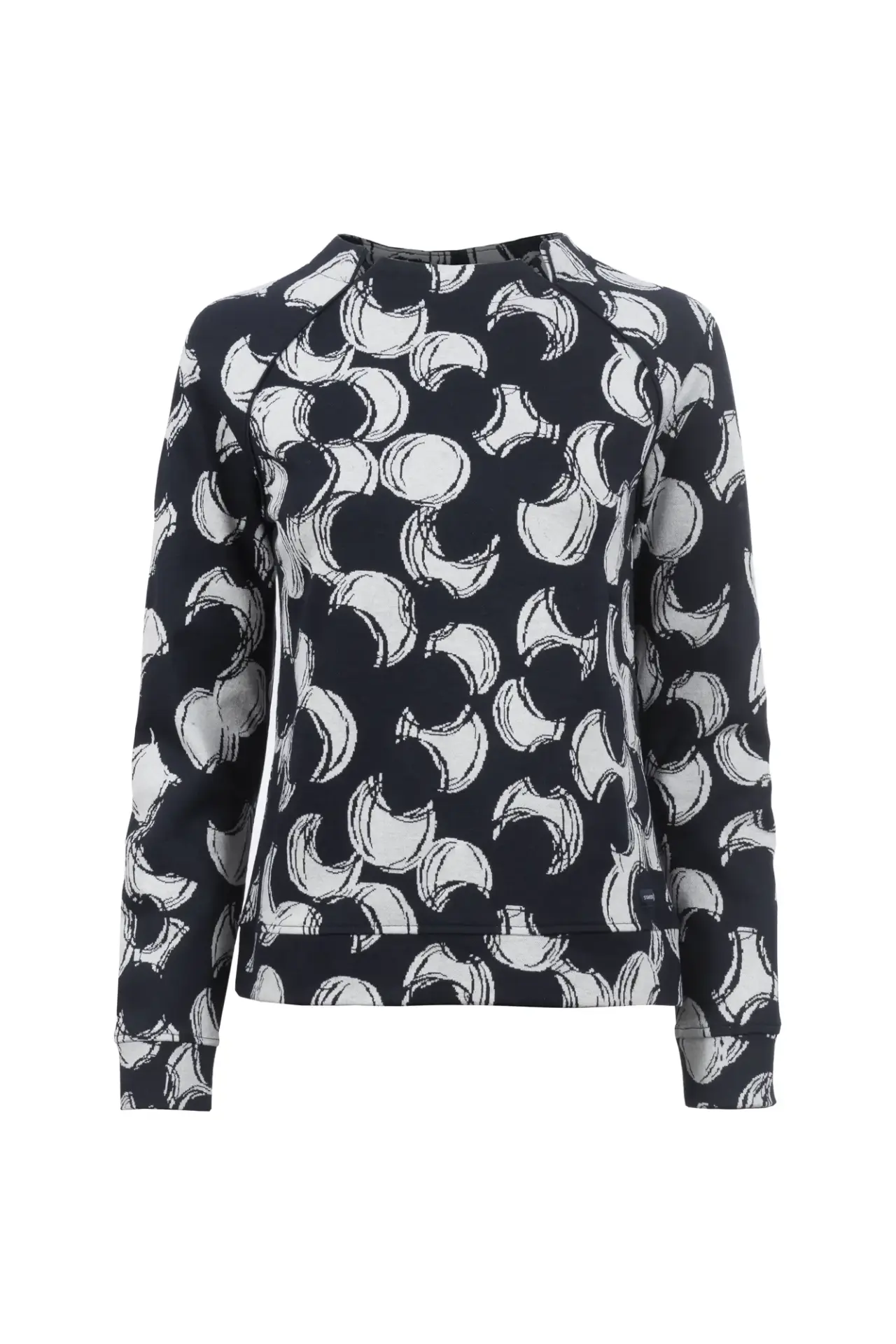 Feminines Jacquard-Sweatshirt mit grafischem Muster in klassischen Navy- und Weißtönen für einen zeitlosen und zugleich stilvollen Look. Der Raglanärmel mit kleinen V-Cuts am Ärmel unterstreicht den einzigartigen Look.