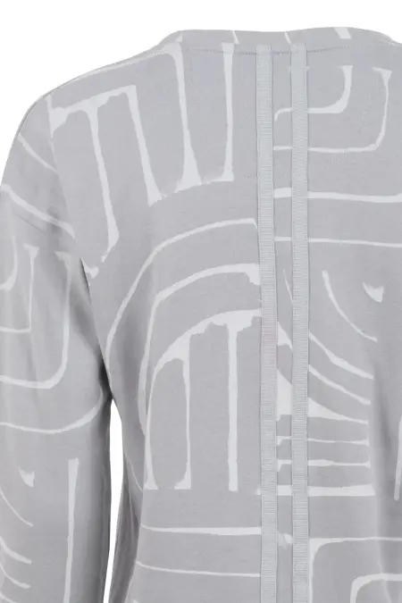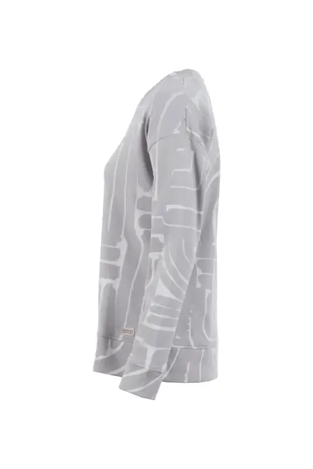 Modernes Sweatshirt mit Rundhalsausschnitt und breitem Bund. Mit grafischem Allover-Muster in neutralen Farben, wodurch das Sweatshirt einfach kombinierbar, und gleichzeitig einzigartig ist.