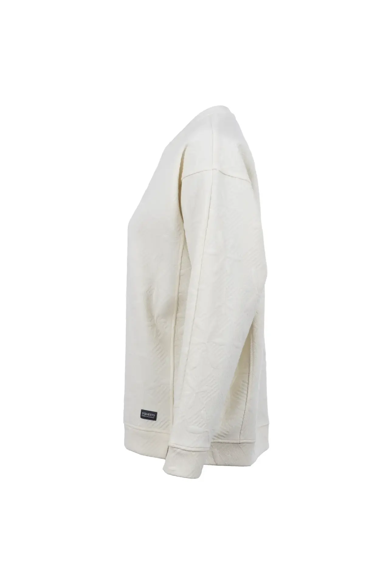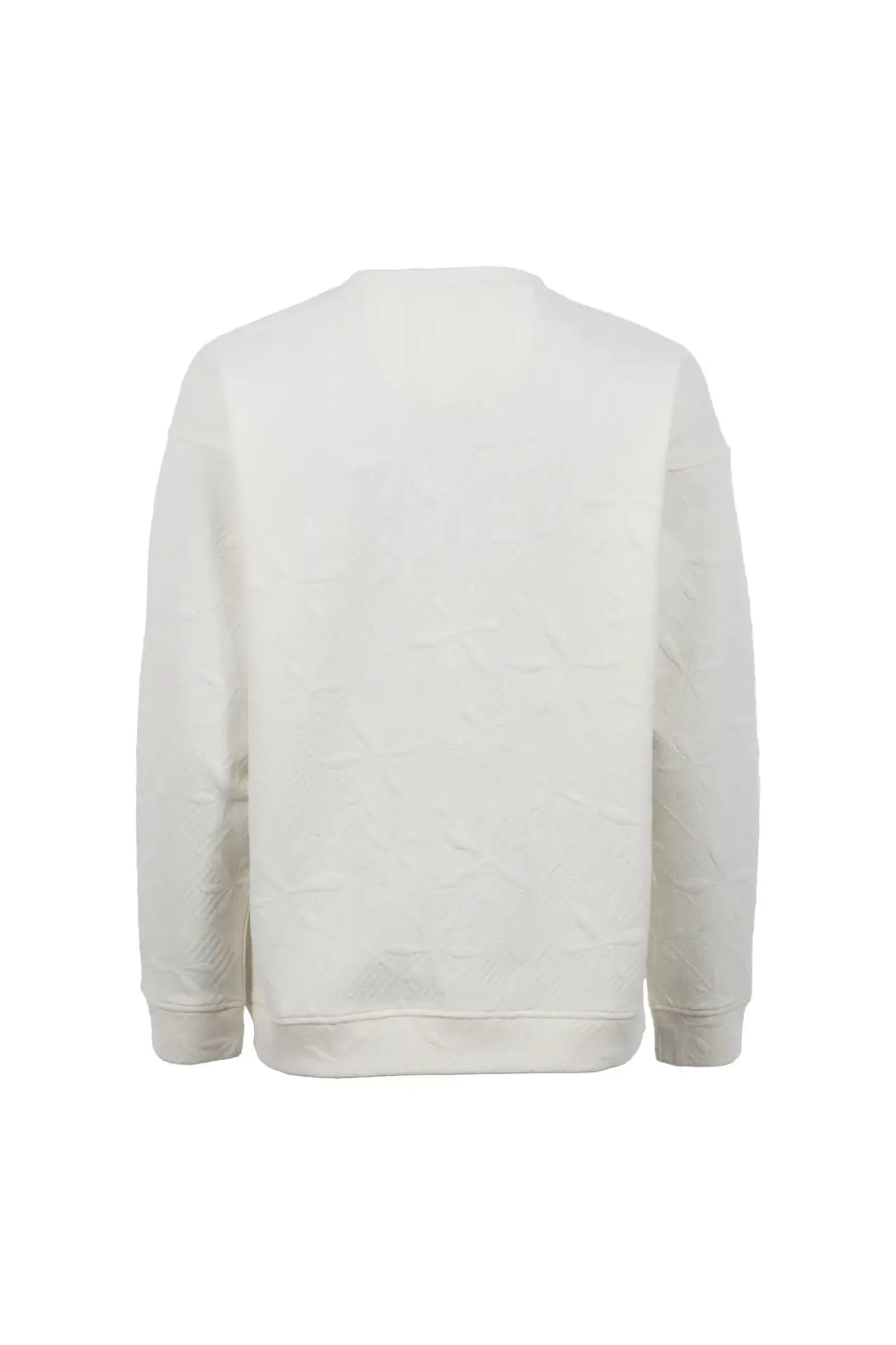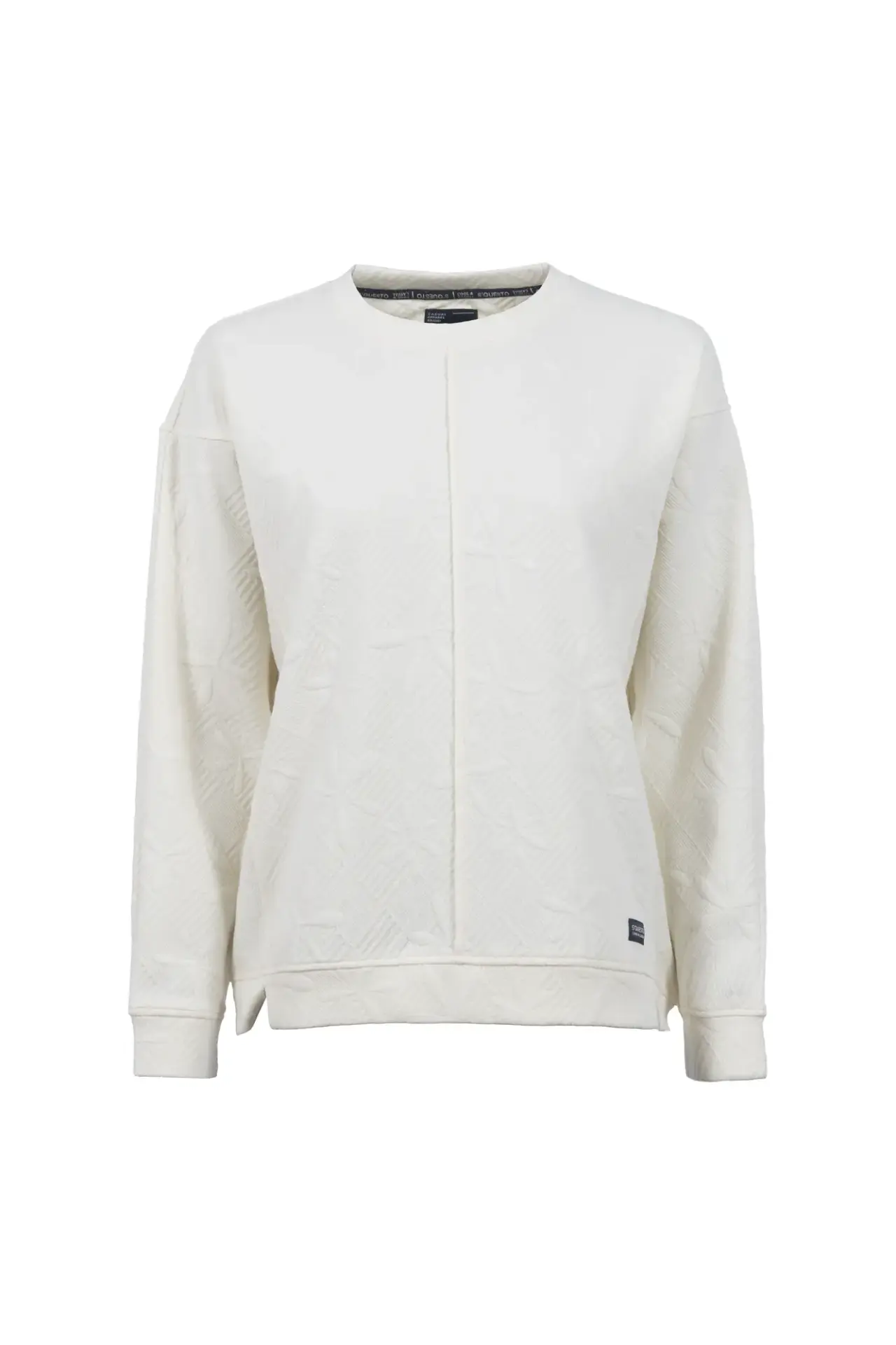 Das Sweatshirt mit Rundhalsausschnitt überzeugt durch ein tonales Jacquard-Muster mit Blumenmotiv. So erhält das Shirt eine raffinierte Note und bleibt gleichzeitig vielseitig kombinierbar. Eine mittige Ziernaht und die überschnittene Schulter erzeugen einen Casual-Look.