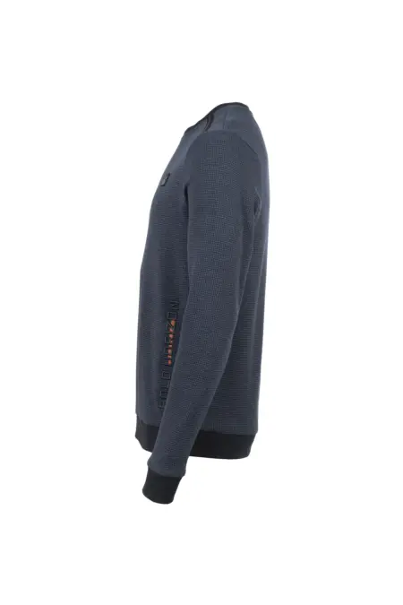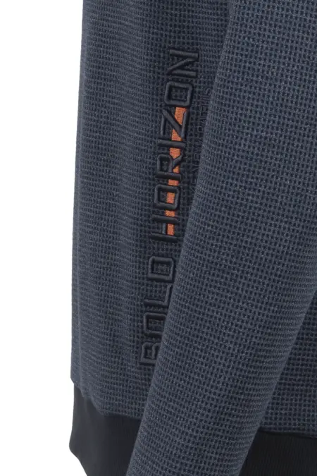 Modisches Sweatshirt in markanter Waffeloptik. Präzise gesetzte Farbakzente und eine hochwertige, seitlich platzierte Stickerei verleihen dem Look eine moderne, detailverliebte Note.