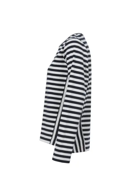Legeres Langarmshirt in Streifenoptik. Aufgepeppt wird der Look durch die Einsätze und kleine Schlitze an den Seiten. Das Shirt hat einen Rundhalsausschnitt.
