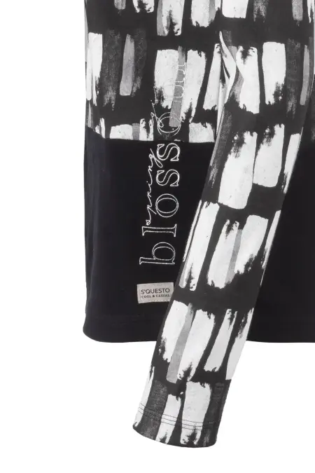 Dieses legere Sweatshirt wird durch seinen besonderen Schnitt zum Hingucker. Mit femininem V-Cut am Kragen und breitem, einfarbigem Bund. Im oberen Bereich mit modernem Allover-Print in stimmiger Farbgebung.