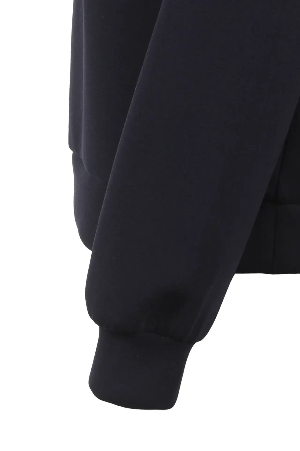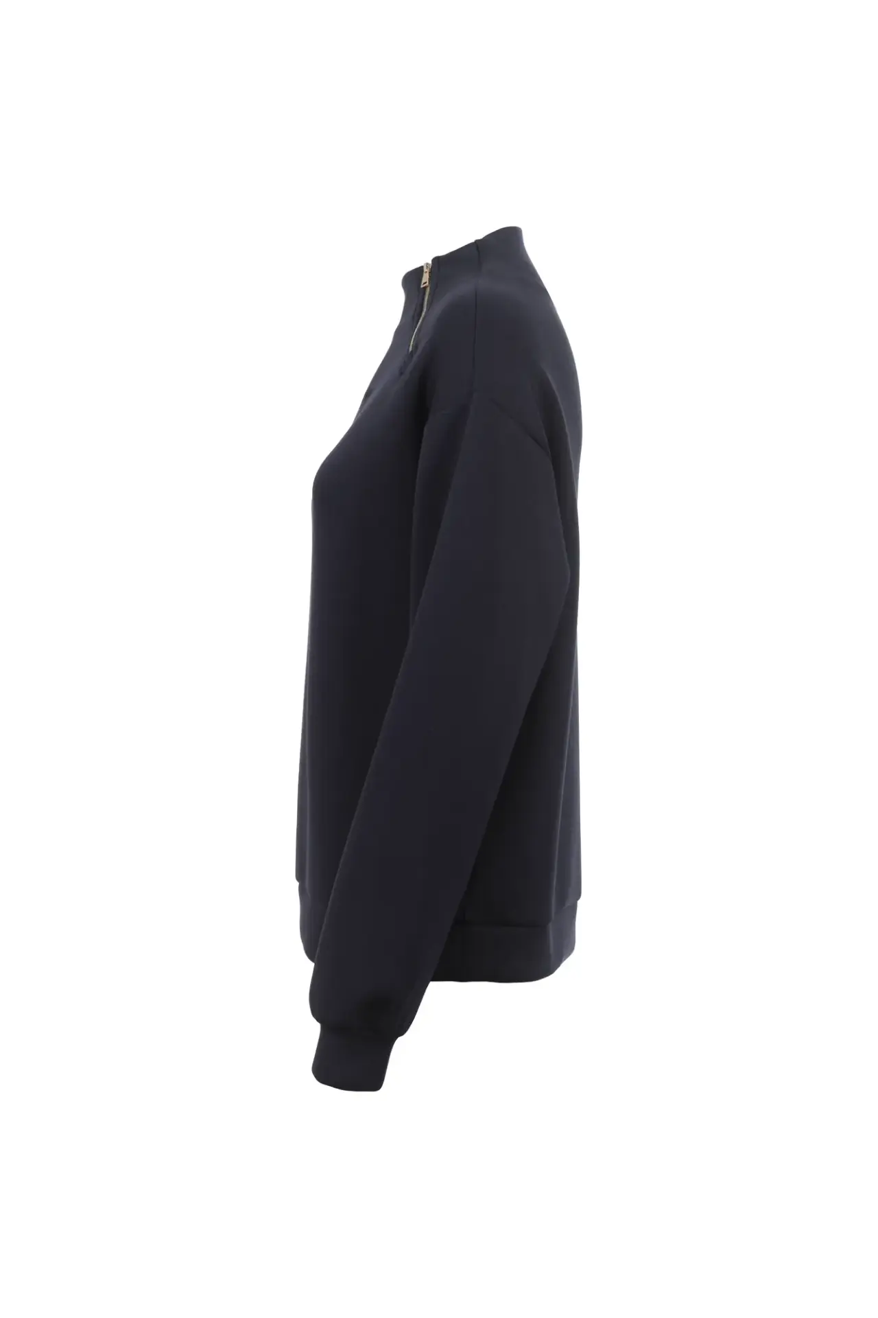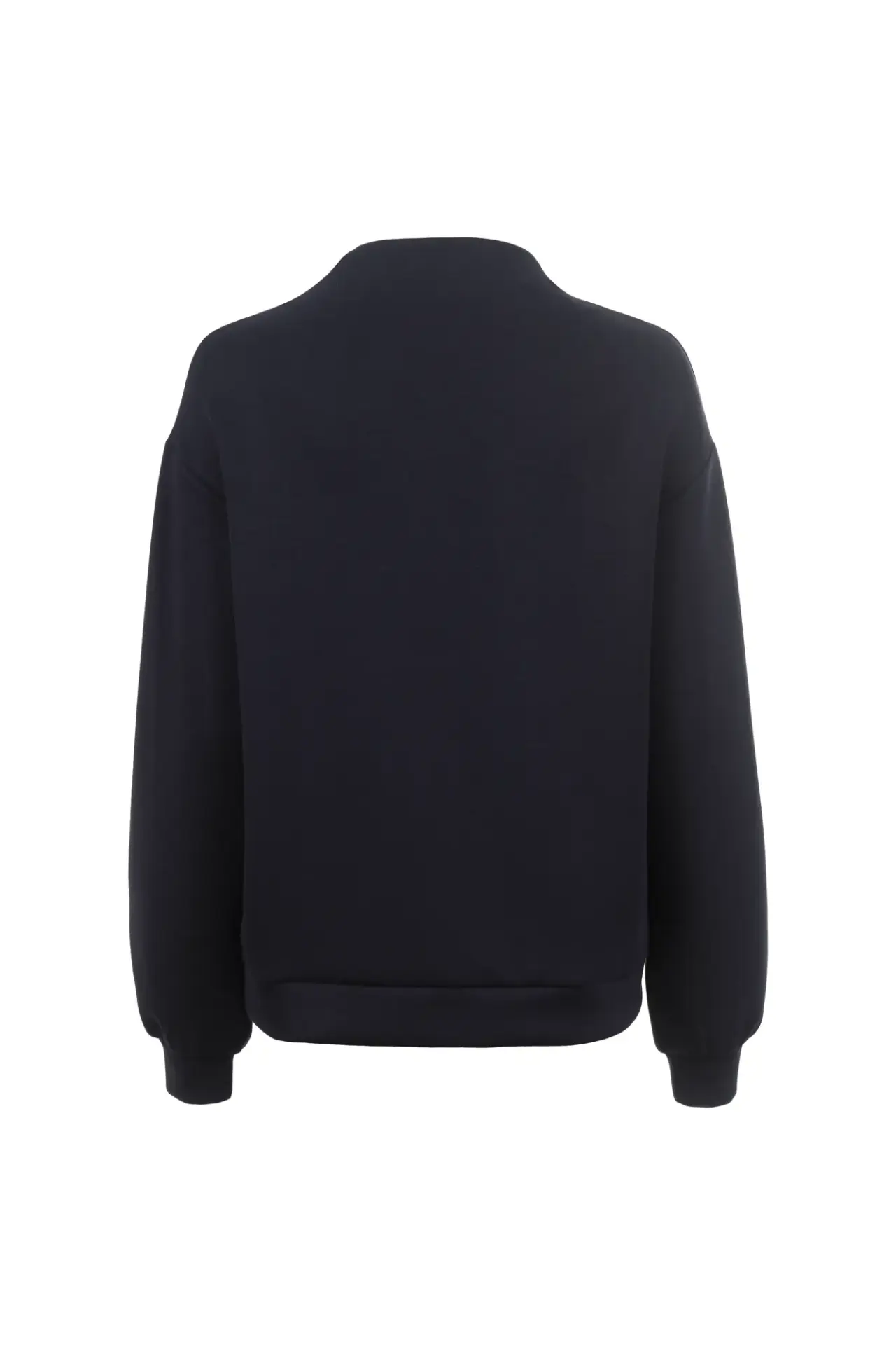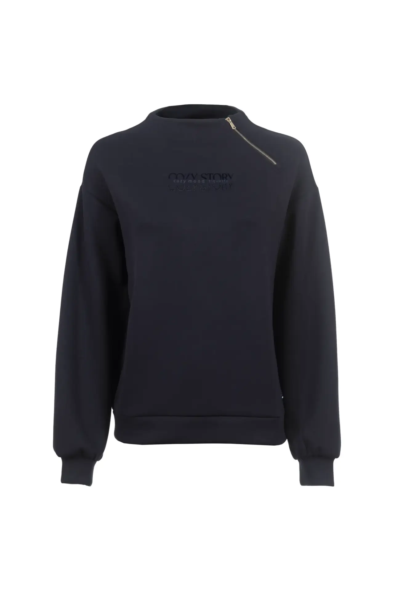 Leichtes Sweatshirt mit lässiger Passform. Der Stehkragen mit dekorativem Reißverschluss fügt eine moderne Note hinzu, abgerundet durch eine tonale Lettering-Stickerei mit Glitzersteinen auf der Brust.