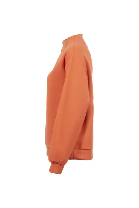 Leichtes Sweatshirt mit lässiger Passform. Der Stehkragen mit dekorativem Reißverschluss fügt eine moderne Note hinzu, abgerundet durch eine tonale Lettering-Stickerei mit Glitzersteinen auf der Brust.