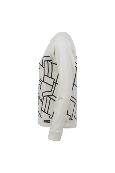 Legeres Leichtsweatshirt mit kleinem Stehkragen. Mit einem grafischen Print auf dem Bodypart in herbstlichen Farbkombinationen. Die Ärmel und der obere Part sind einfarbig gehalten, mit einem kleinen Lettering-Print mit Glitzersteinen, welcher das Design abrundet.