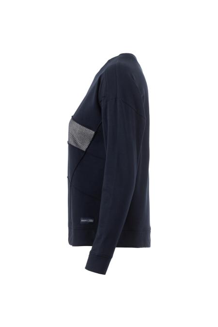 Sweatshirt mit überschnittener Schulter für einen legeren und coolen Look, welcher unterstrichen wird durch die raffinierte Schnittführung und den gepunkteten Print. Abgerundet wird das Ganze durch einen kleinen, zarten Lettering-Print auf der Brust.