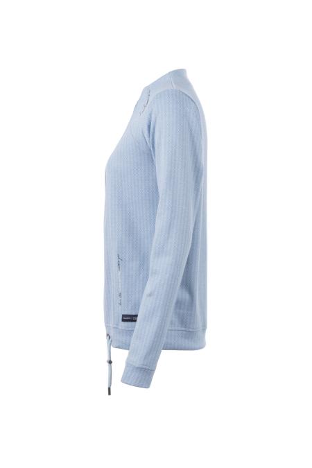 Hochwertiges Sweatshirt mit sehr feiner Jacquard-Musterung in Fischgrat-Optik. Mit raffinierten Ziernähten und Kordelzug am Bund für eine feminine Optik und optimalen Sitz. Abgerundet wird der Look durch einen kleinen Lettering-Print an der Schulter.