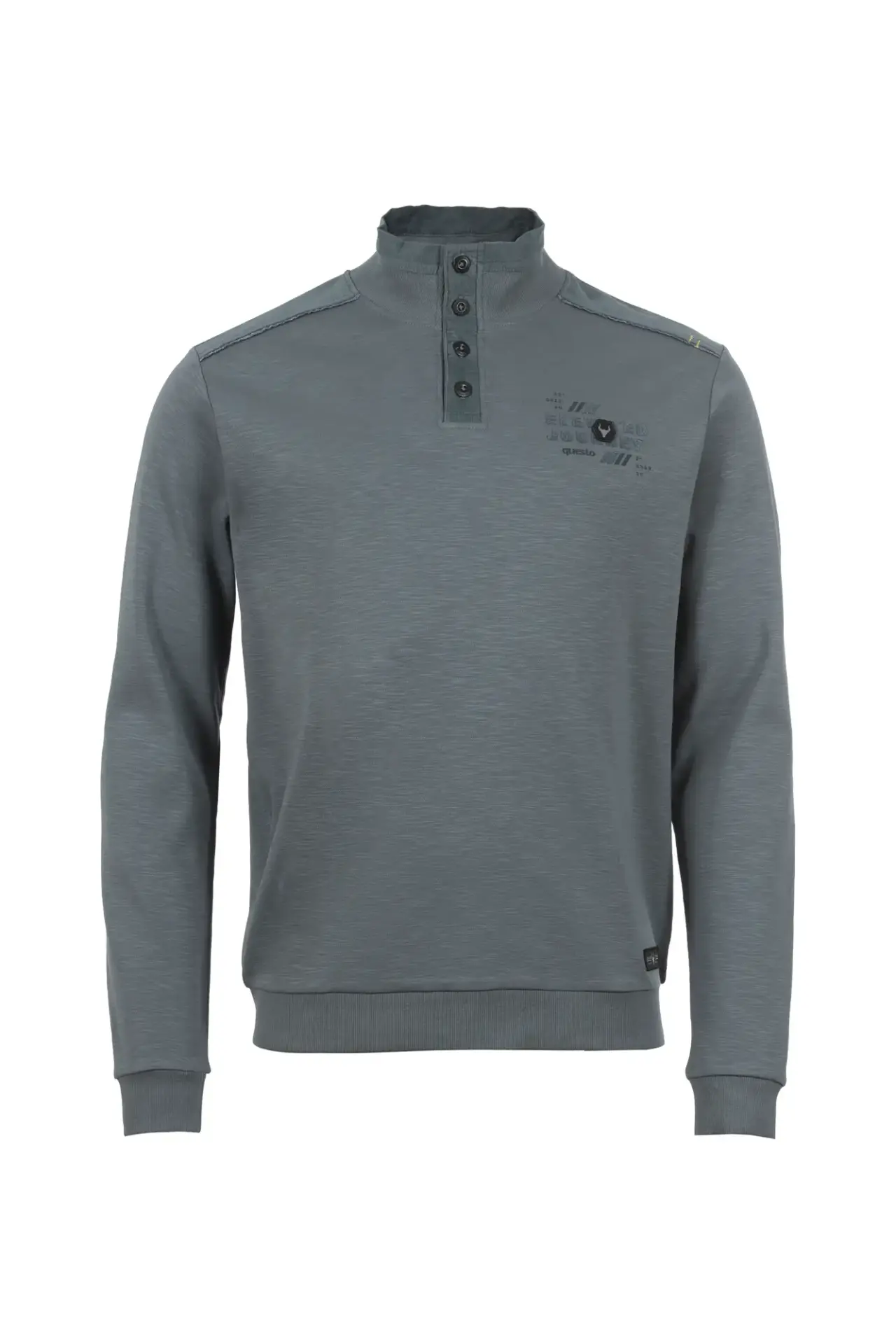 Komfortables Sweatshirt mit Knopfleiste und Stehkragen. Der Look überzeugt durch einen Lettering-Print mit Flock auf der Brust. Abgerundet durch schmale Kontrastpipings an den Schultern runden den Look ab.