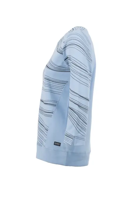 Sweatshirt mit 3/4-Arm in sportivem Design. Die besondere, ausgefallene Schnittführung mit dem breiten Bund zeichnet das Shirt aus und macht es zusammen mit dem grafischen Allover-Print zum echten Hingucker!