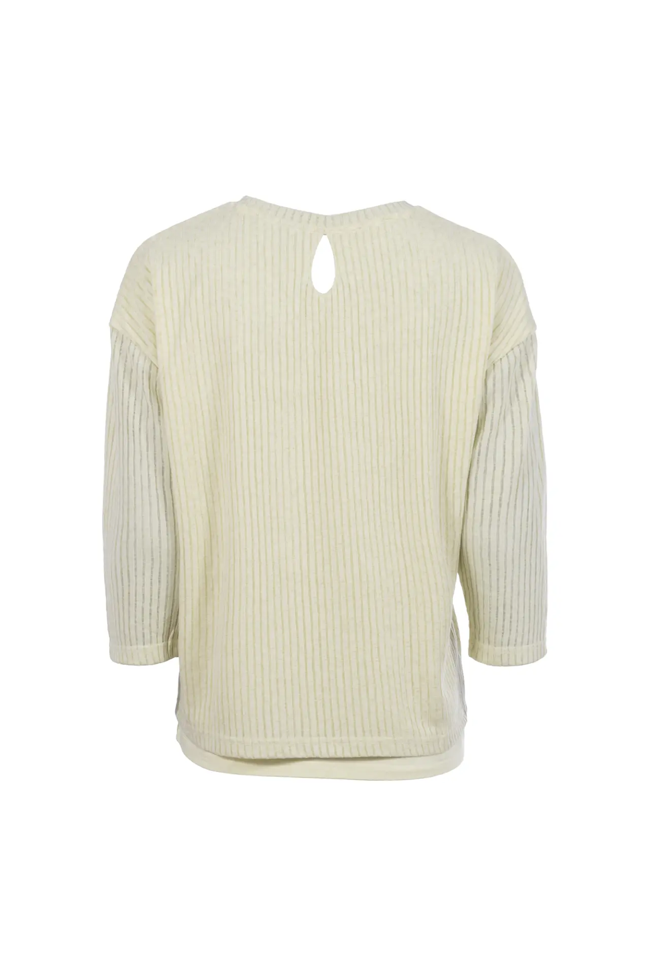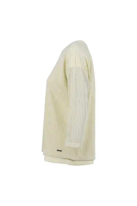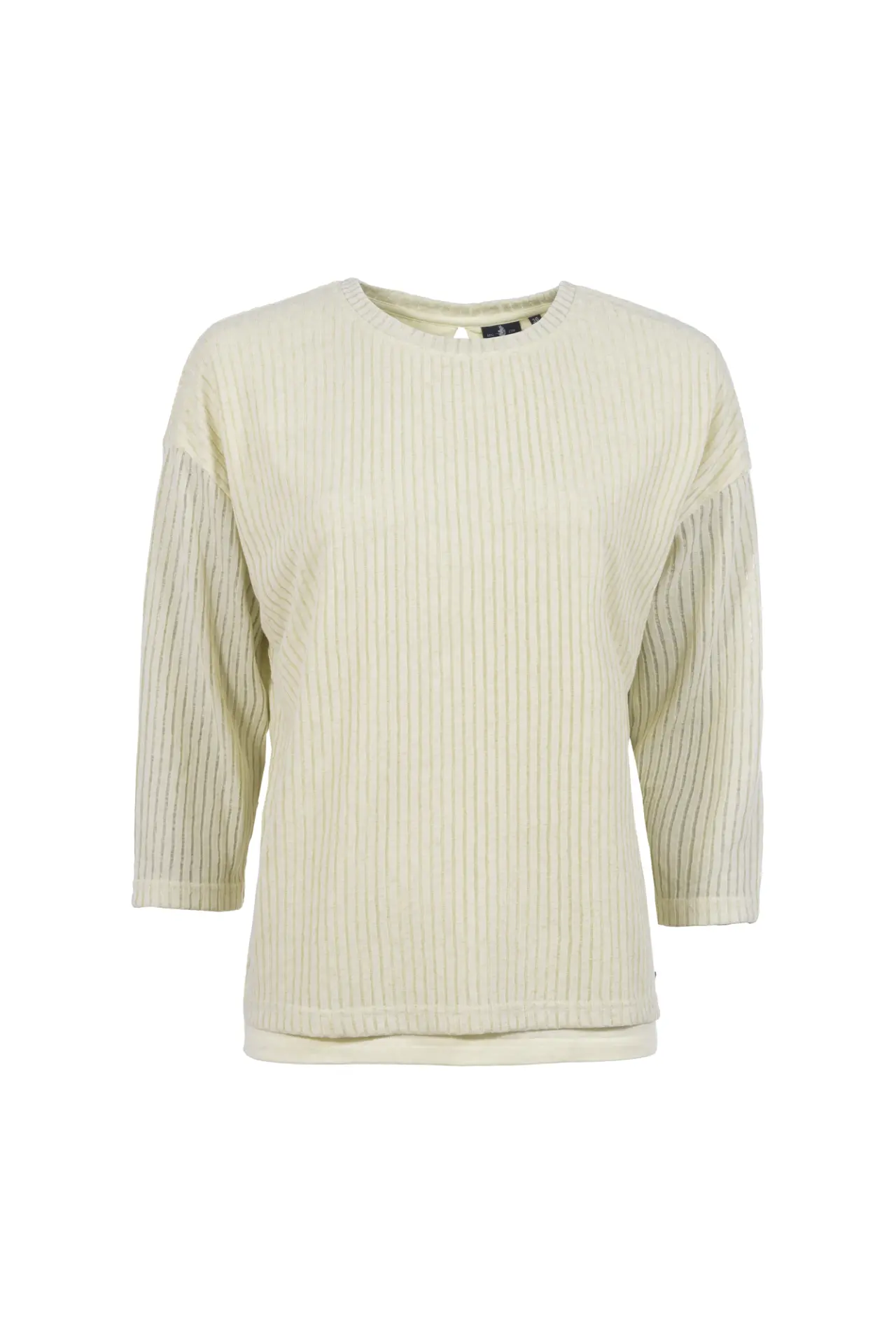 Leichtsweat in moderner 2-in-1-Optik mit Rundhalsausschnitt. Mit feinen Rippenstruktur-Streifen für das besondere Etwas. Der kleine Cut-Out unterstützt den femininen Charakter des Shirts.