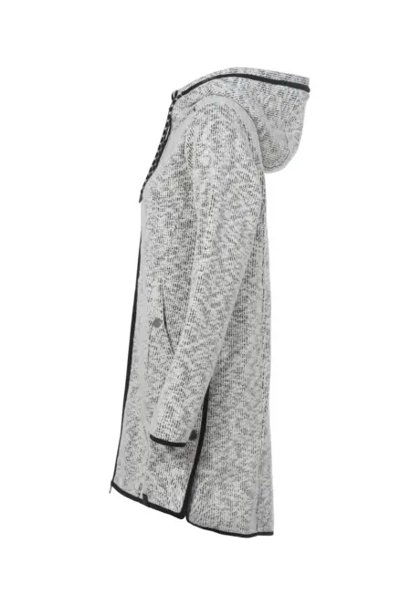 Längere Jacke aus besonderer Jacquard-Ware. Eine Kapuze mit Kordeln, sowie Knopdetails an den Seiten verleihen der Jacke ihren charakteristischen Look.