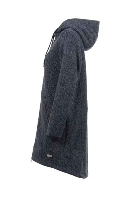 Legere Übergangsjacke aus Woll-Imitat. Mit Kapuze und Taschen. Die breiten Kordeln und die farblichen Akzente verleihen der Jacke einen modernen und sportiven Touch.