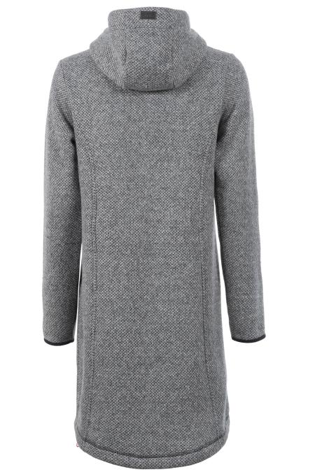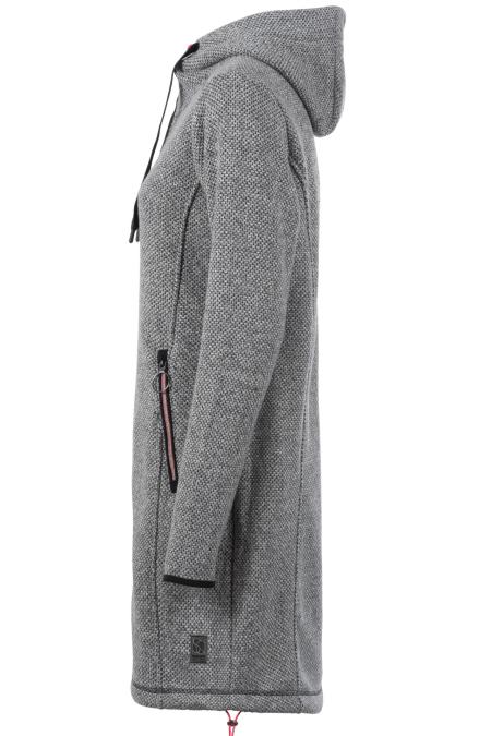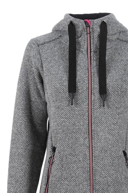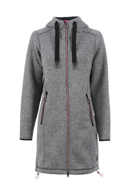Legere Übergangsjacke aus Woll-Imitat. Mit Kapuze und Taschen. Die breiten Kordeln und die farblichen Akzente verleihen der Jacke einen modernen und sportiven Touch.