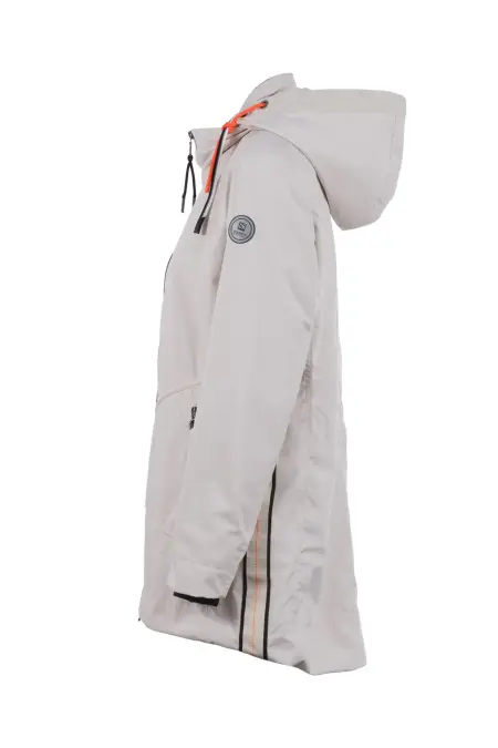 Längere, sportive Jacke mit Kapuze und Taschen. Sie zeichnet sich besonders durch viele farbliche Akzent-Details aus.