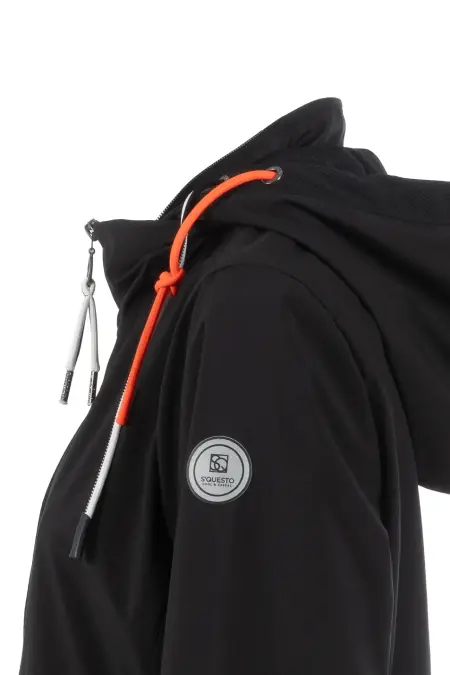 Längere, sportive Jacke mit Kapuze und Taschen. Sie zeichnet sich besonders durch viele farbliche Akzent-Details aus.